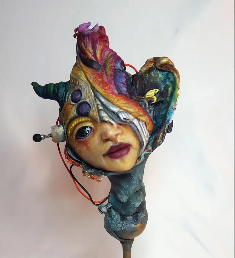 Mixed Media Sculpture - Polymer/ Resin, Twigs, paper, moss, acrylics.